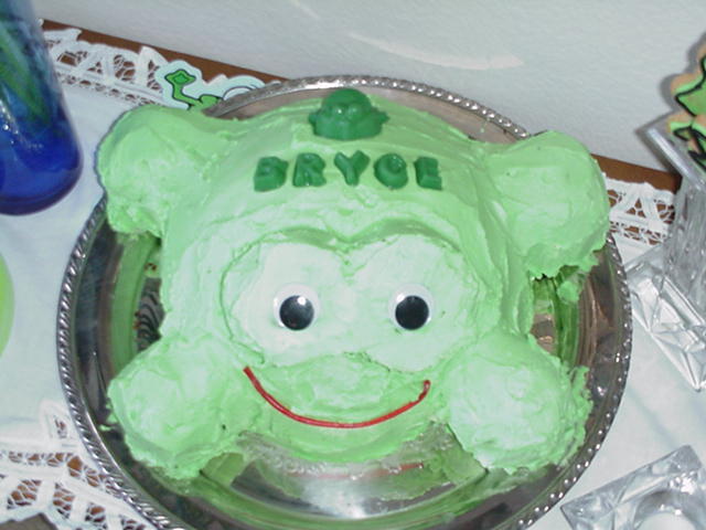 There's your froggy cake that we helped Mommy make this morning Brycie!